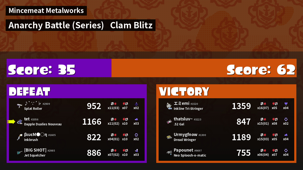 | Mode | Clam Blitz - Anarchy Battle (Series) | ||