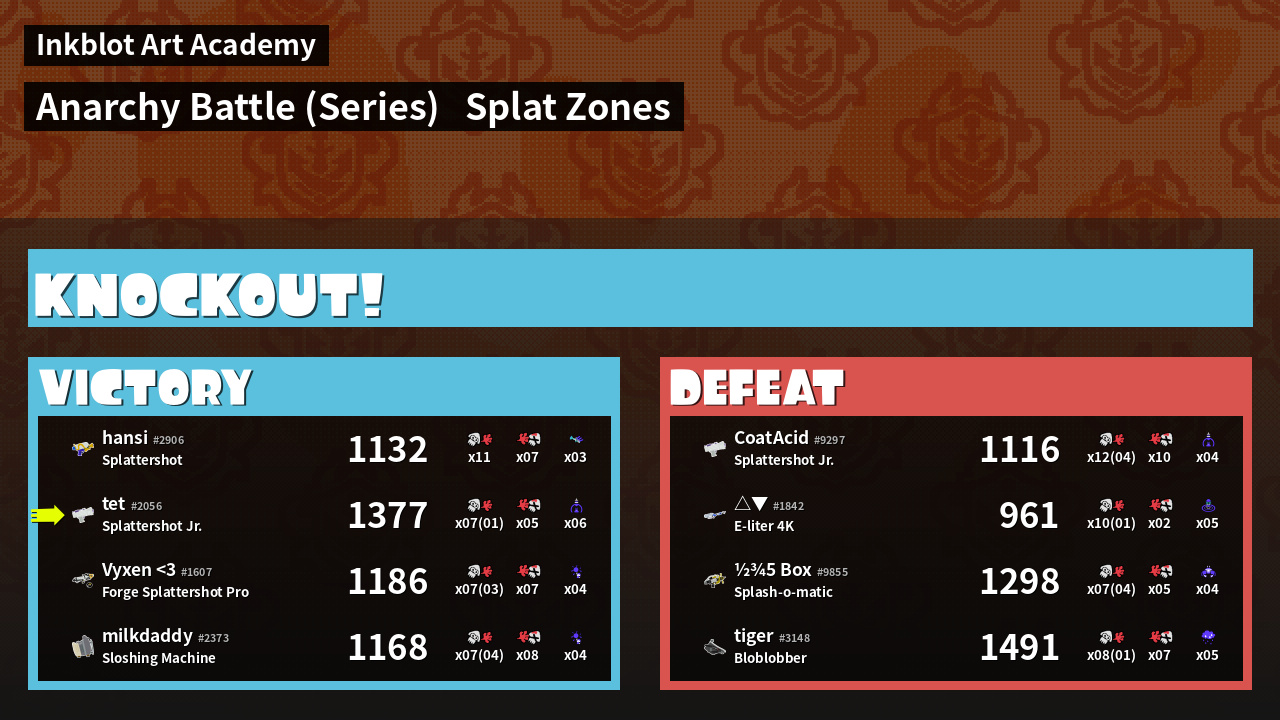 | Mode | Splat Zones - Anarchy Battle (Series) | ||