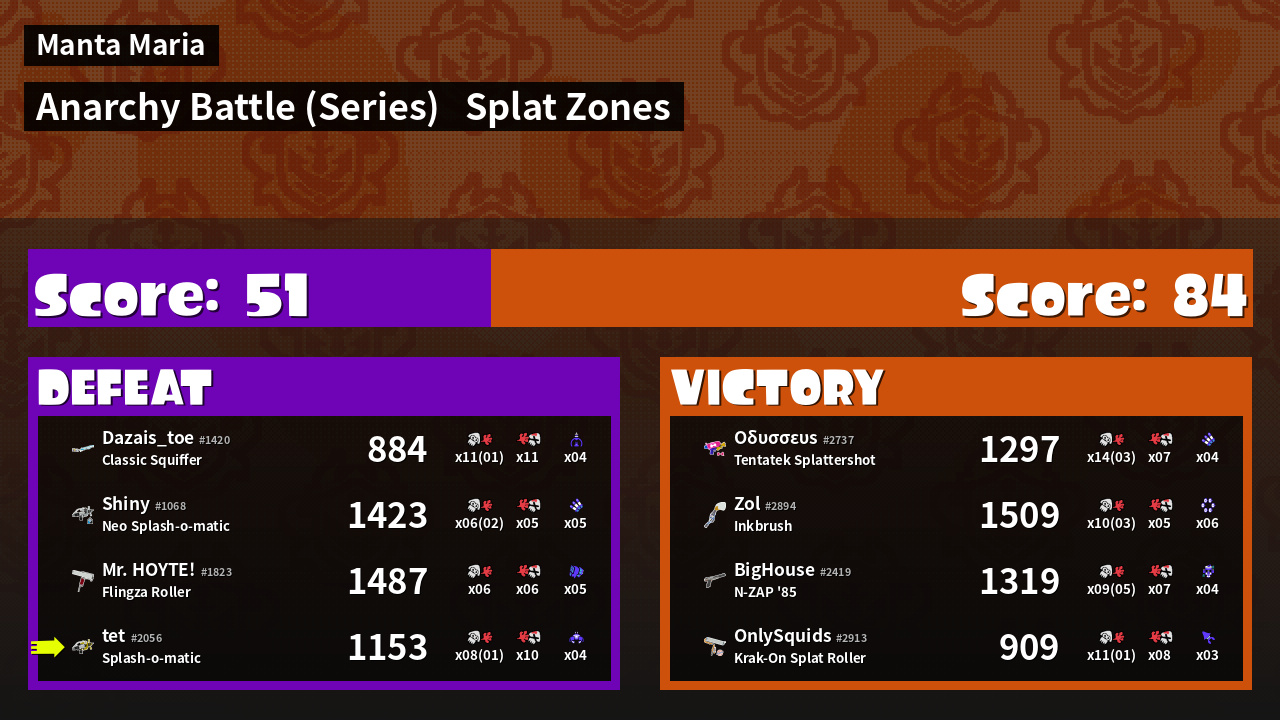 | Mode | Splat Zones - Anarchy Battle (Series) | ||