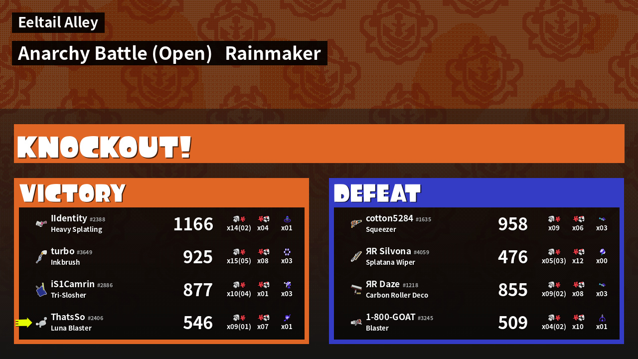 | Mode | Rainmaker - Anarchy Battle (Open) | ||