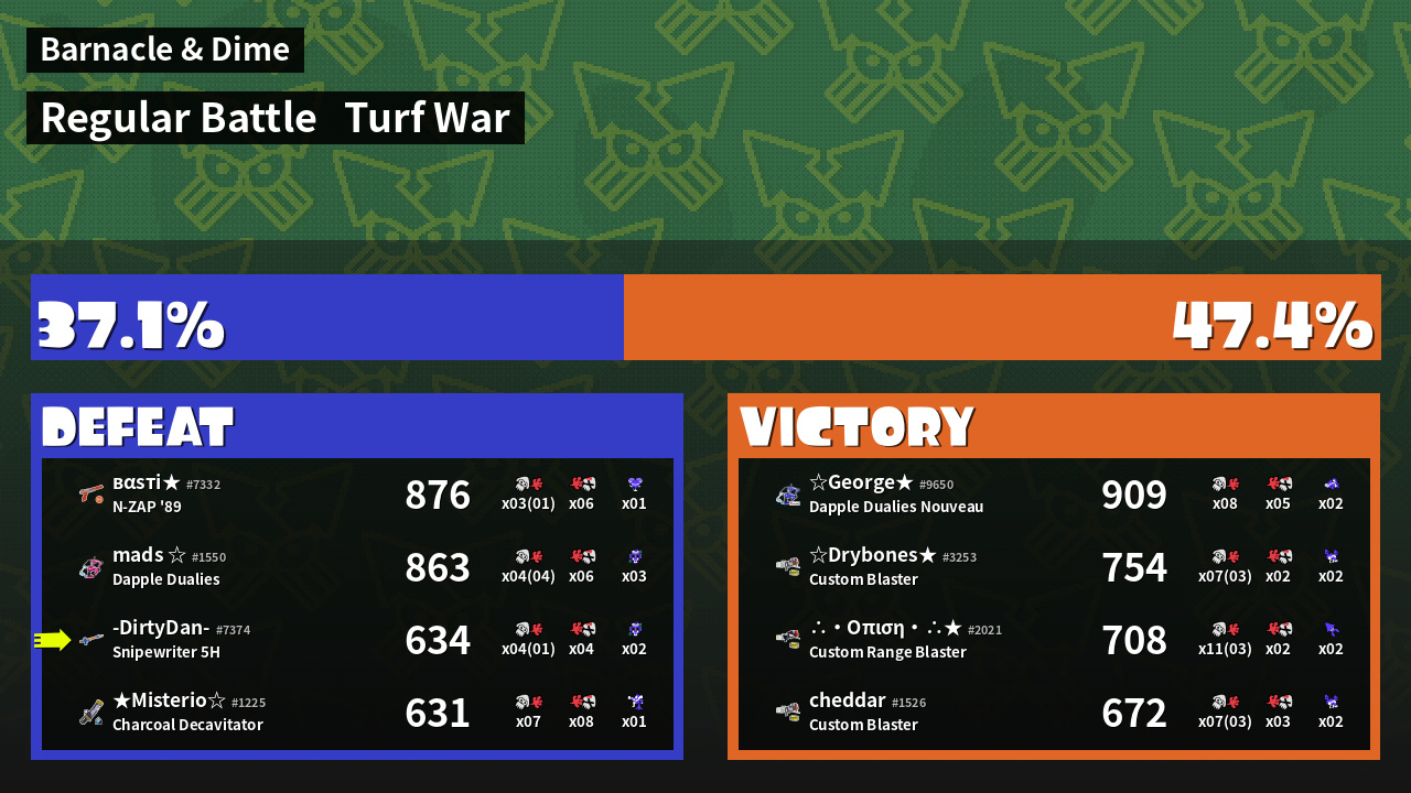 | Medals | #1 Base Defender #1 Ink Consumer #2 Overall Splatter | ||