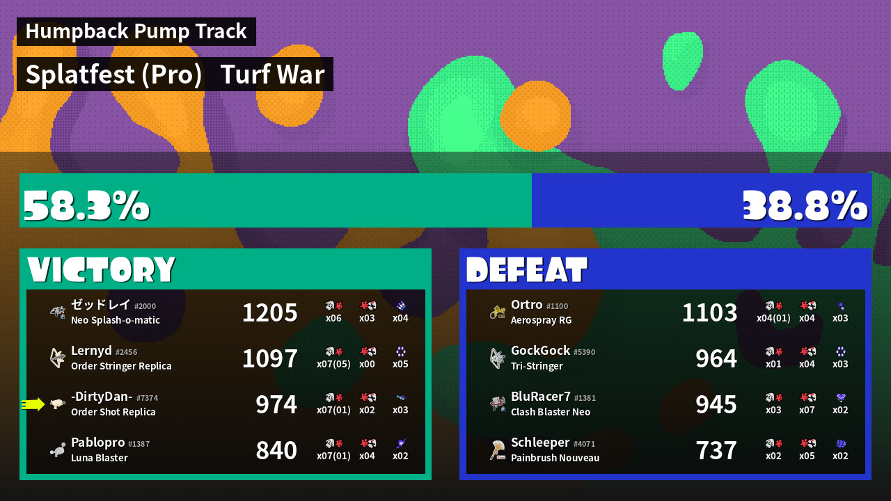| Medals | #1 Overall Splatter #1 Enemy-Base Inker #1 Enemy Splatter | ||