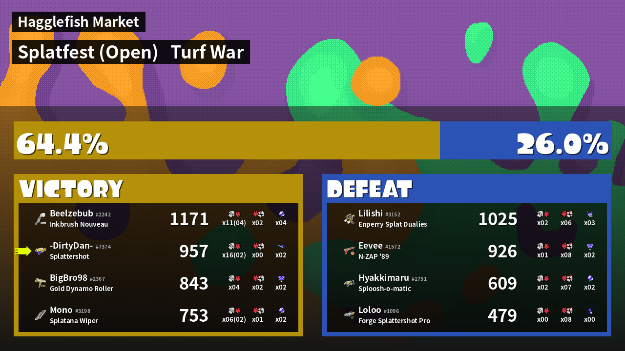 | Medals | #1 Overall Splatter #1 Popular Target #1 Enemy Splatter | ||