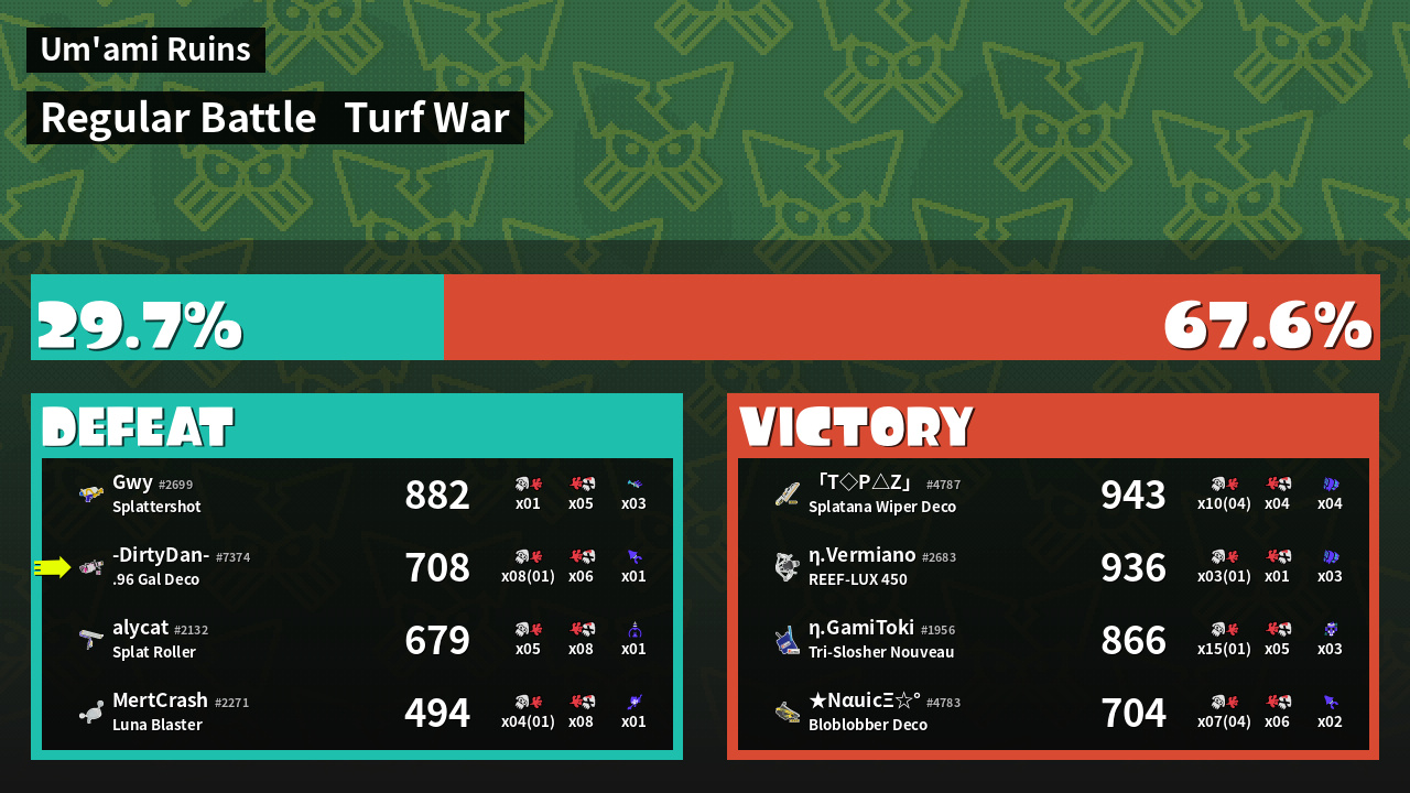 | Medals | #1 Overall Splatter #1 Enemy-Base Inker #1 Enemy Splatter | ||