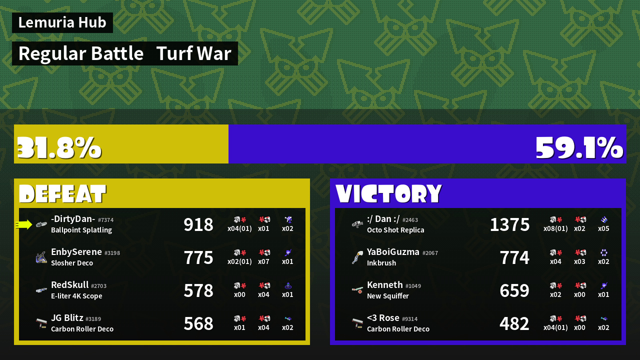 | Mode | Turf War - Regular Battle | ||