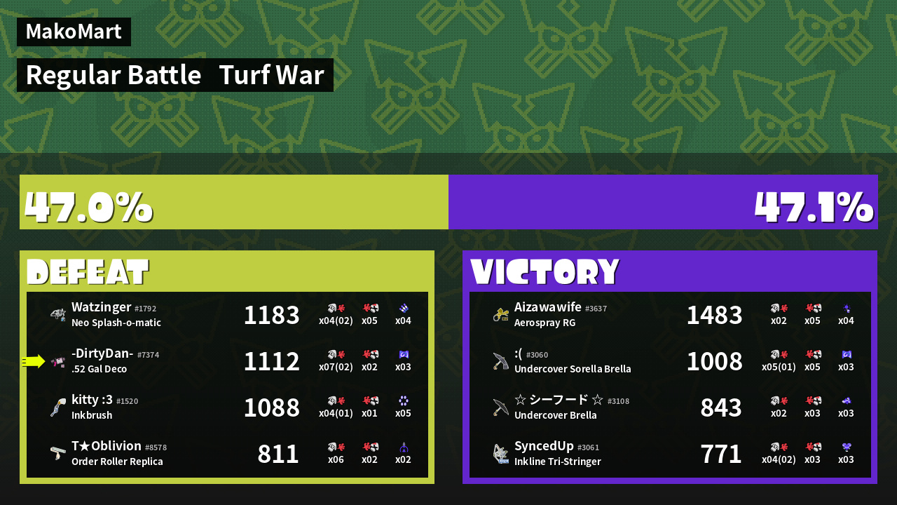 | Mode | Turf War - Regular Battle | ||