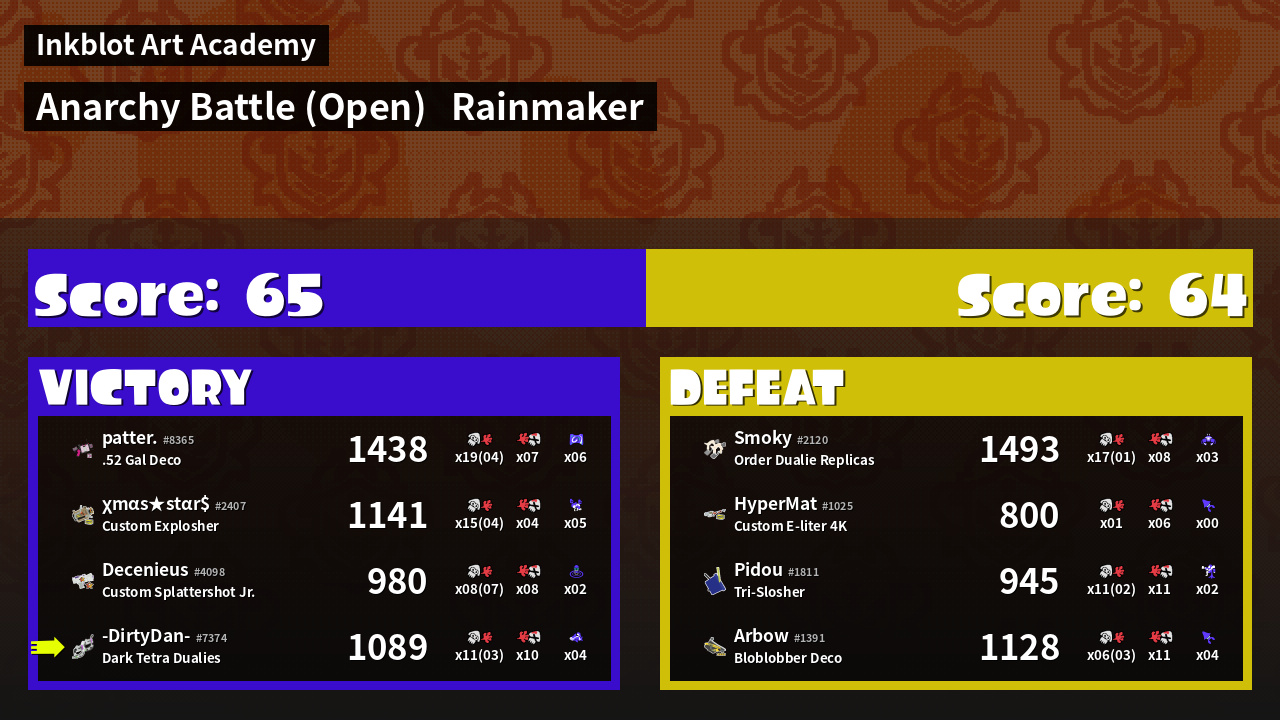 | Mode | Rainmaker - Anarchy Battle (Open) | ||