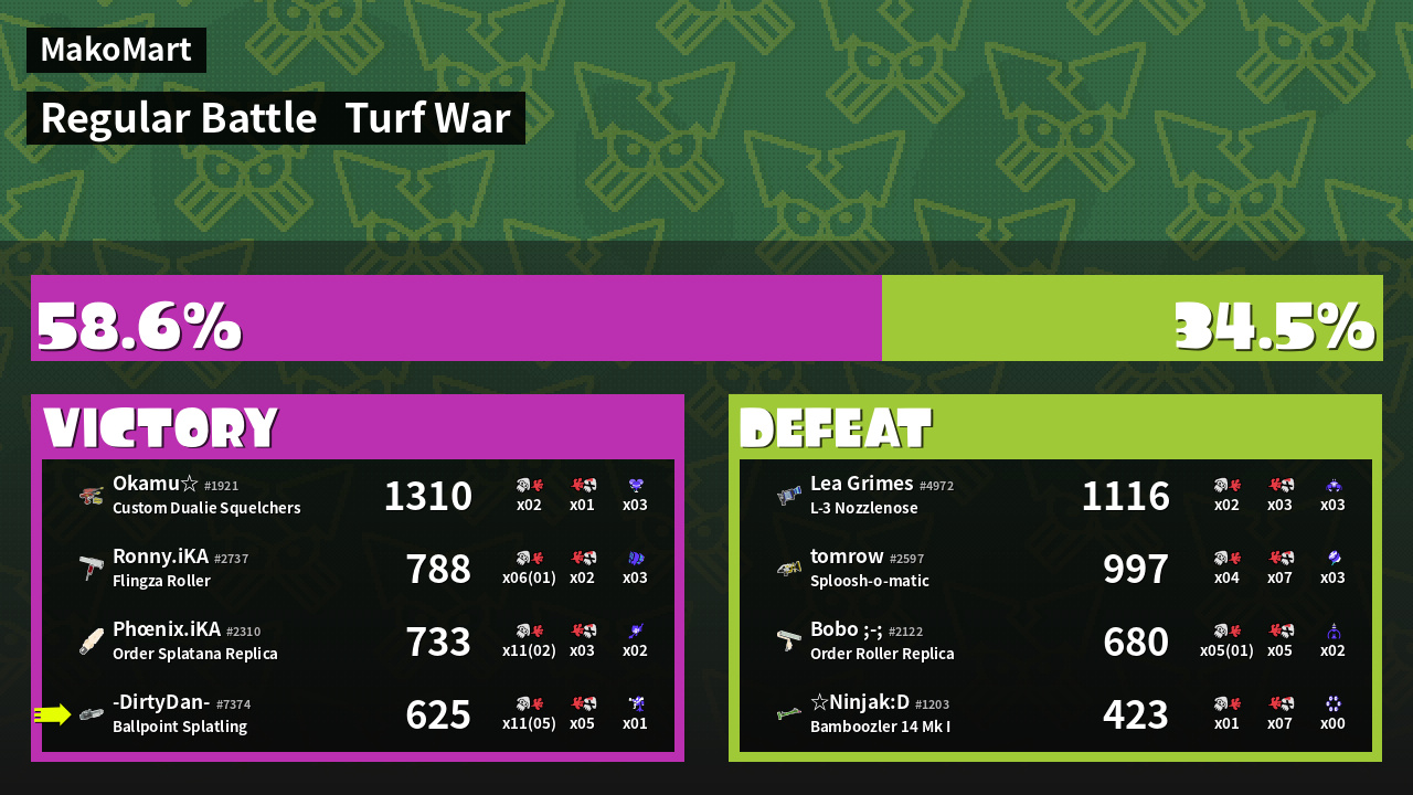 | Medals | #1 Overall Splatter #1 Splat Assister #1 Base Defender | ||