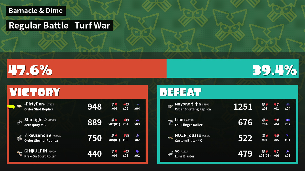 | Mode | Turf War - Regular Battle | ||