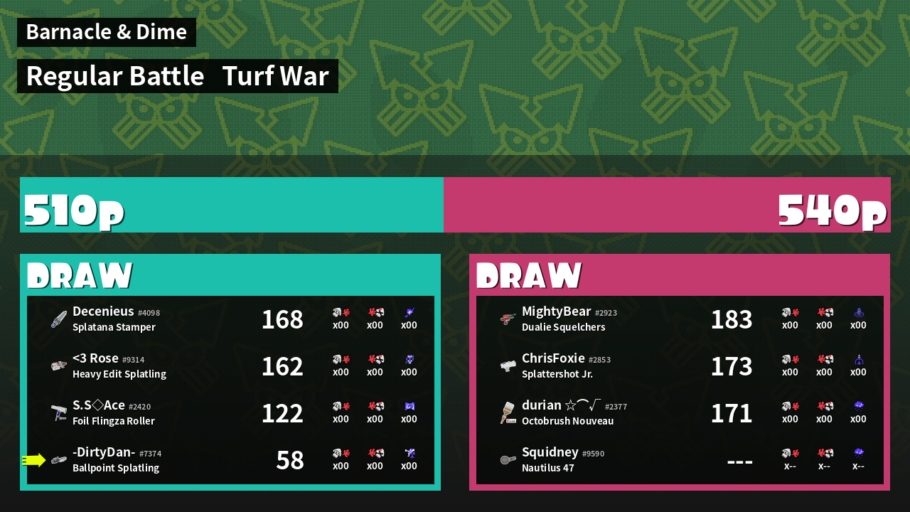 | Mode | Turf War - Regular Battle | ||