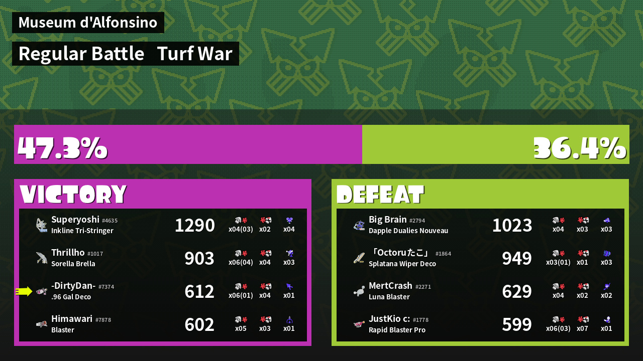 | Mode | Turf War - Regular Battle | ||