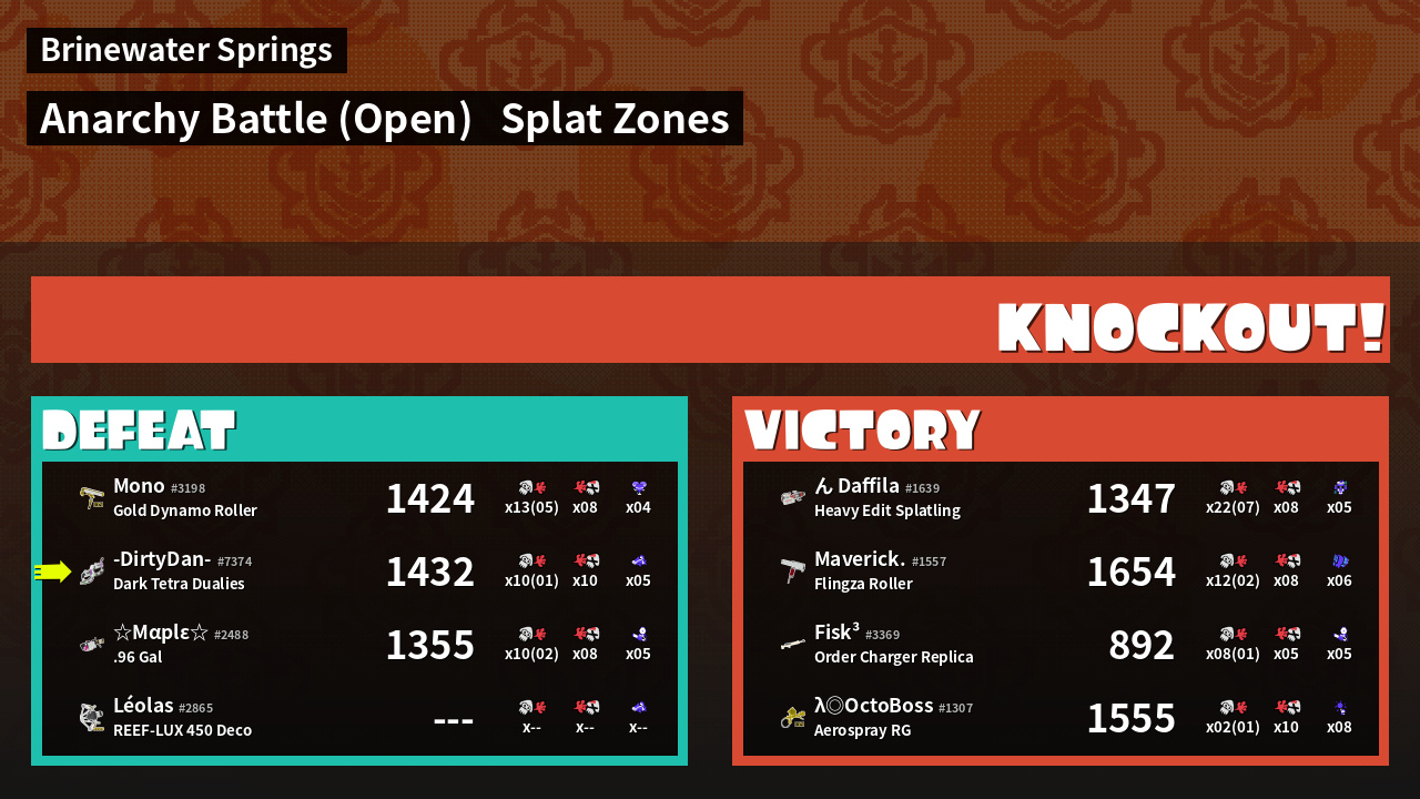 | Mode | Splat Zones - Anarchy Battle (Open) | ||