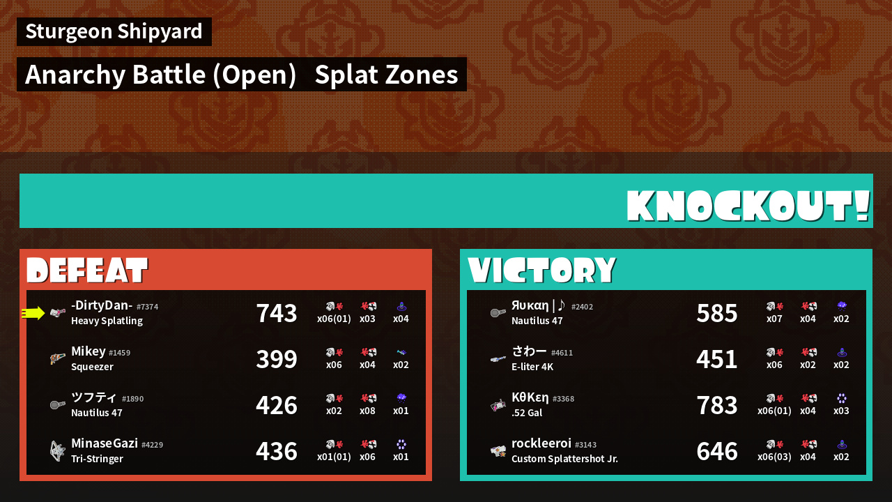 | Mode | Splat Zones - Anarchy Battle (Open) | ||