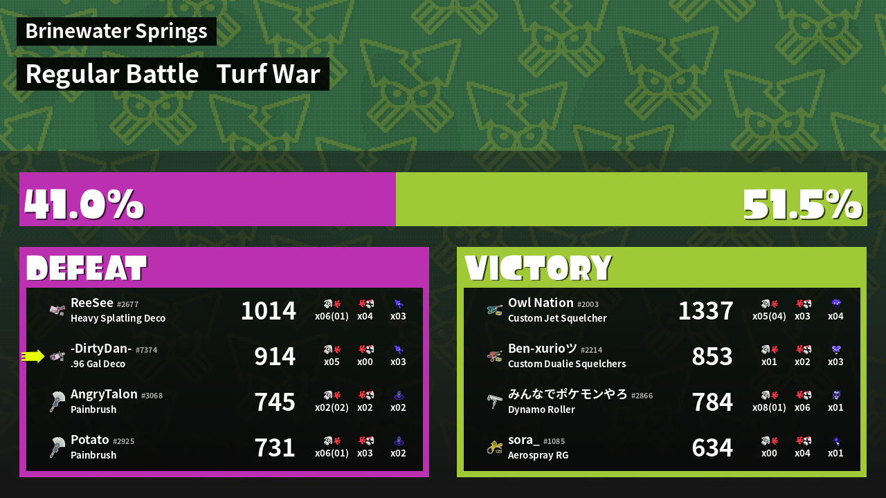 | Medals | #1 Enemy-Base Inker #1 Super Jump Spot #1 Enemy Splatter | ||