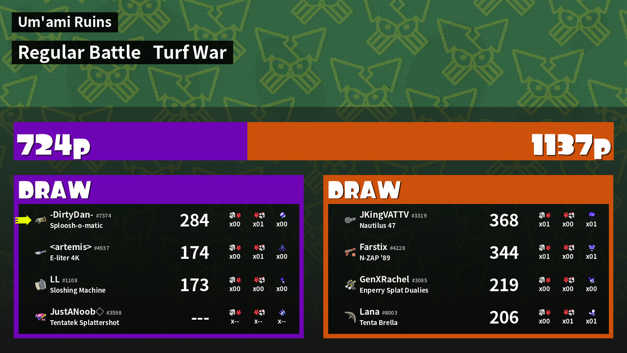 | Mode | Turf War - Regular Battle | ||