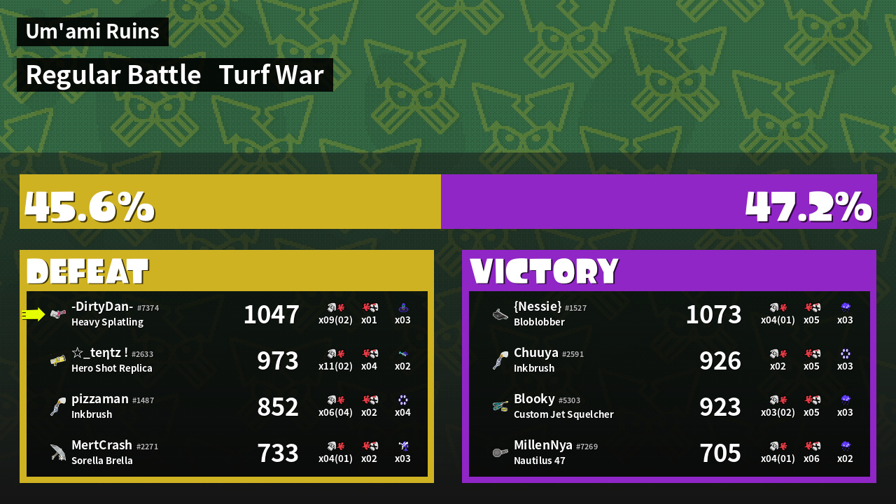 | Mode | Turf War - Regular Battle | ||