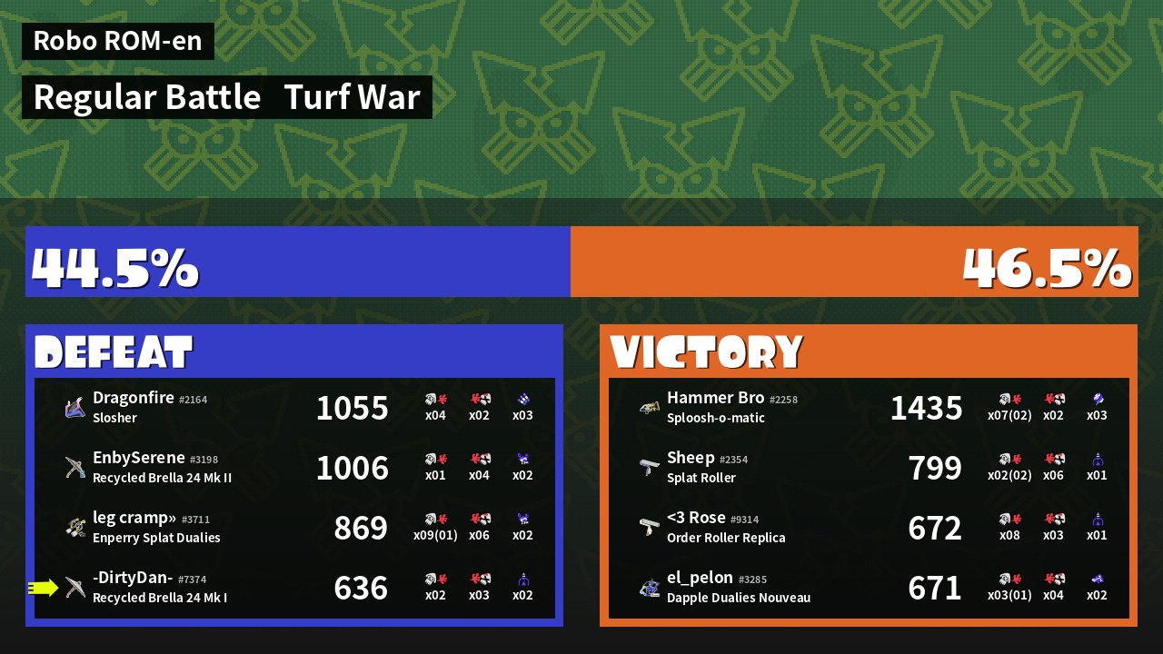| Mode | Turf War - Regular Battle | ||