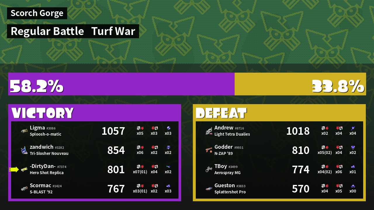 | Medals | #1 Overall Splatter #1 Enemy Splatter #1 Splat Assister | ||