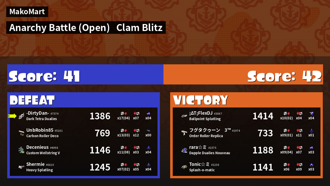 | Mode | Clam Blitz - Anarchy Battle (Open) | ||