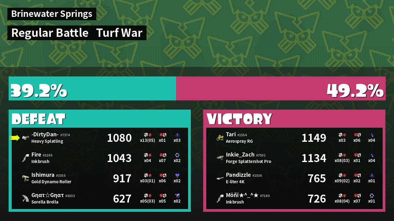 | Mode | Turf War - Regular Battle | ||