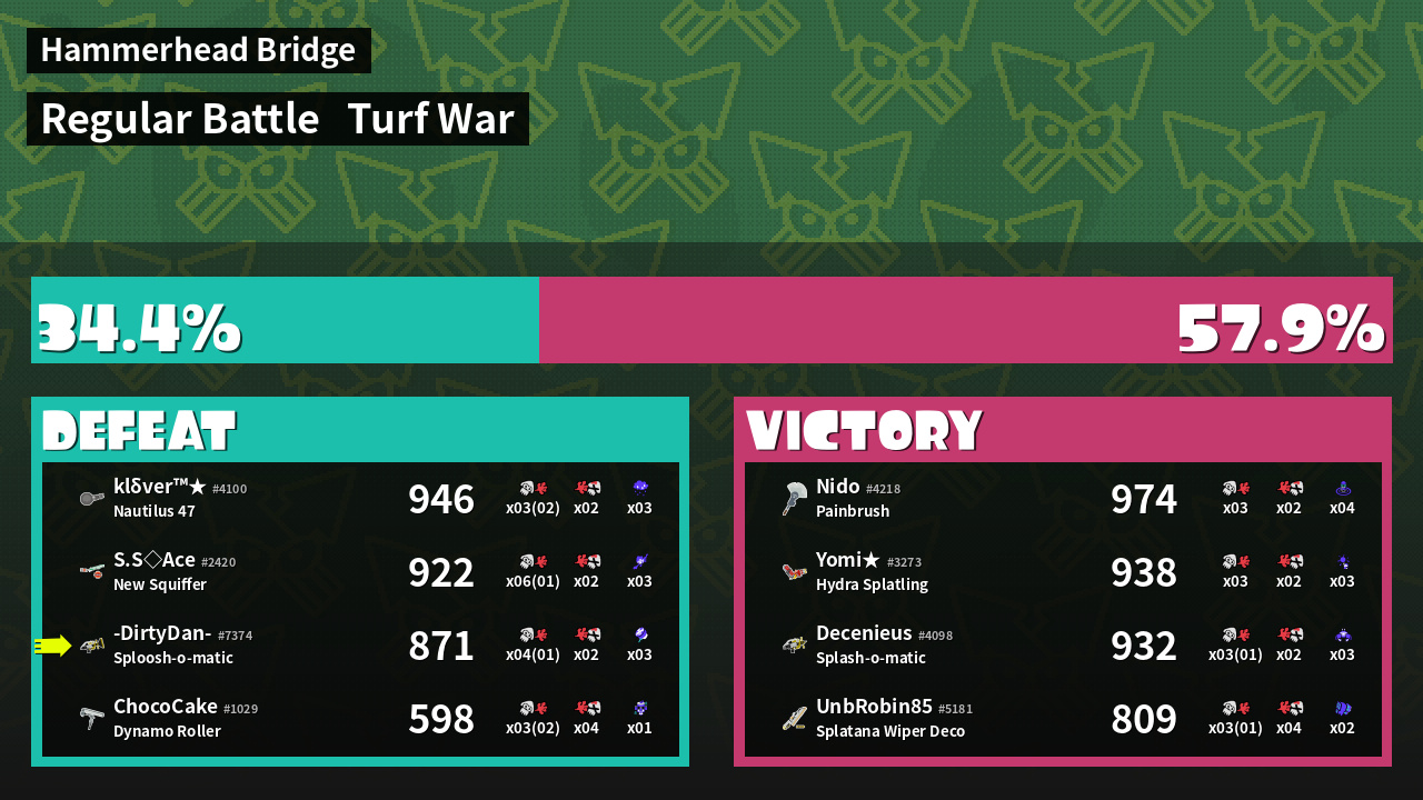| Medals | #1 Enemy-Base Inker #1 Super Jump Spot #2 Overall Splatter | ||