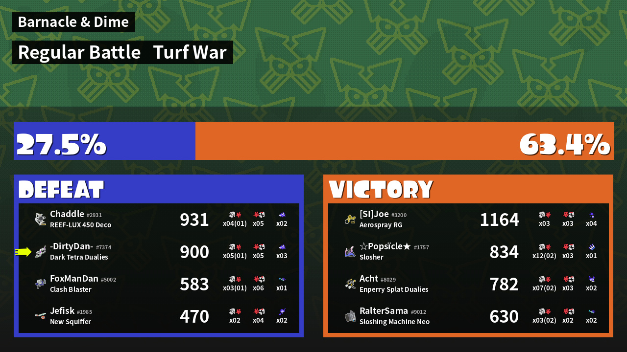 | Medals | #1 Overall Splatter #1 Home-Base Inker #1 Enemy Splatter | ||