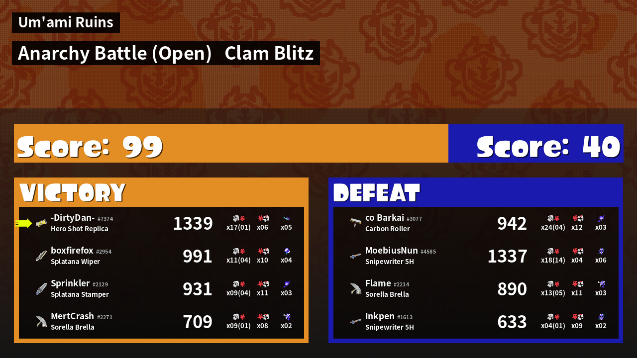 | Mode | Clam Blitz - Anarchy Battle (Open) | ||