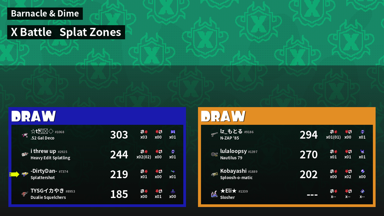 | Weapon | Splattershot ( Suction Bomb / Trizooka) | ||