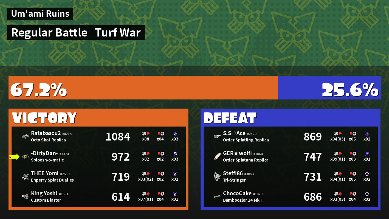 | Mode | Turf War - Regular Battle | ||