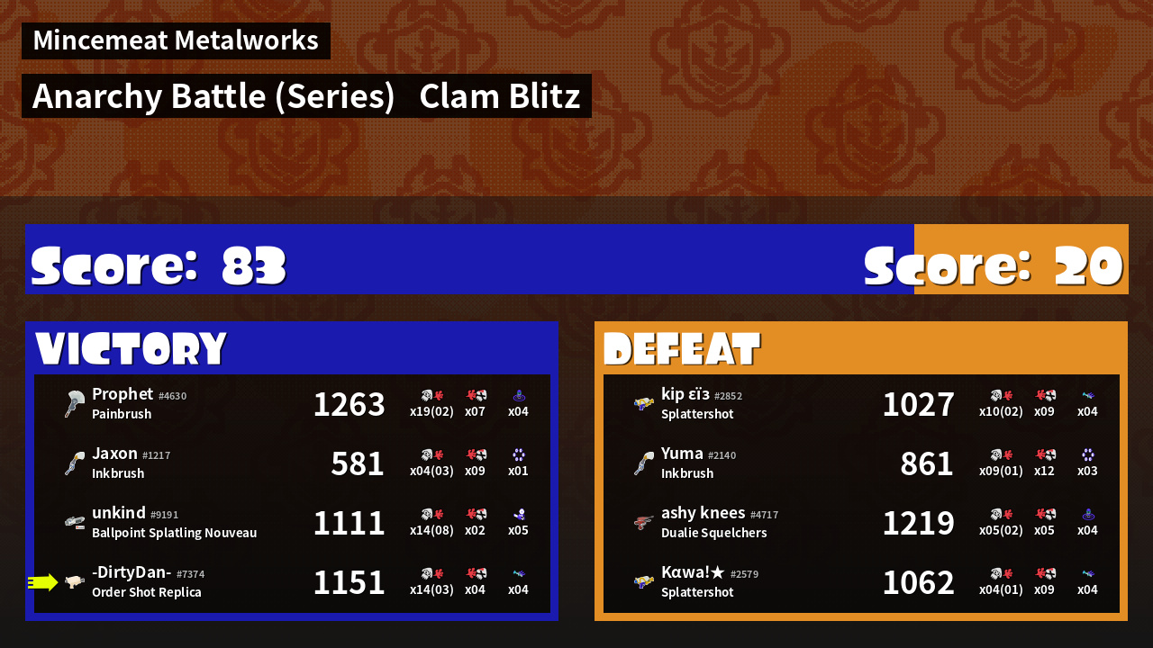 | Mode | Clam Blitz - Anarchy Battle (Series) | ||