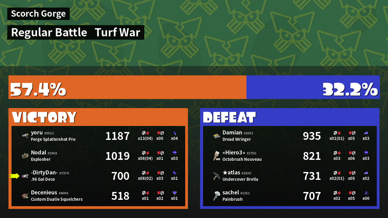 | Mode | Turf War - Regular Battle | ||