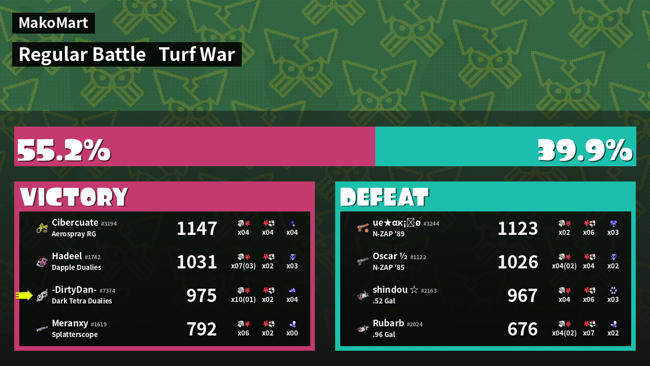 | Mode | Turf War - Regular Battle | ||