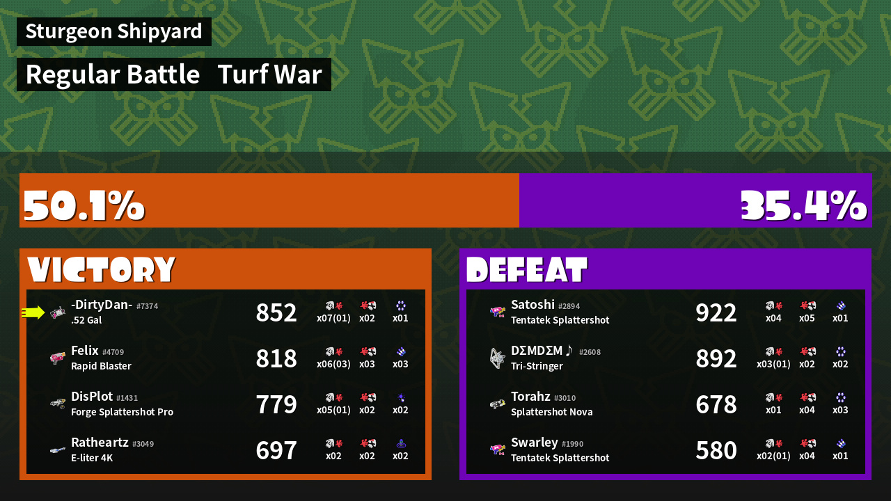 | Mode | Turf War - Regular Battle | ||