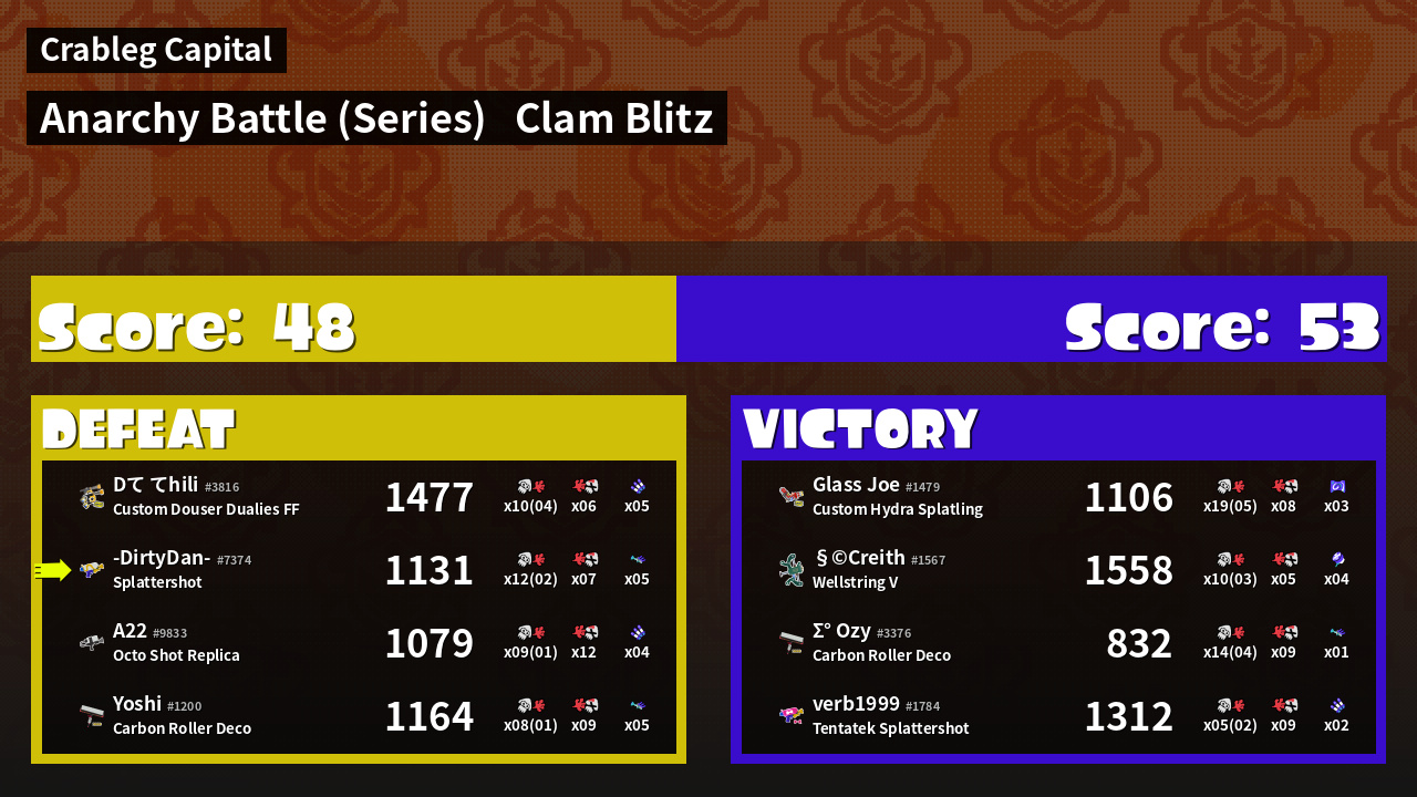 | Mode | Clam Blitz - Anarchy Battle (Series) | ||