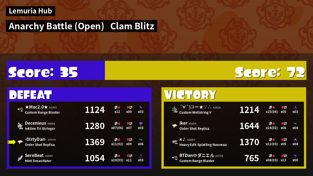| Mode | Clam Blitz - Anarchy Battle (Open) | ||