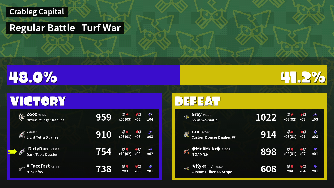 | Mode | Turf War - Regular Battle | ||