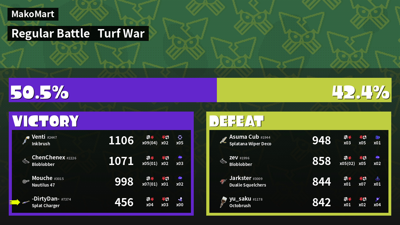| Mode | Turf War - Regular Battle | ||