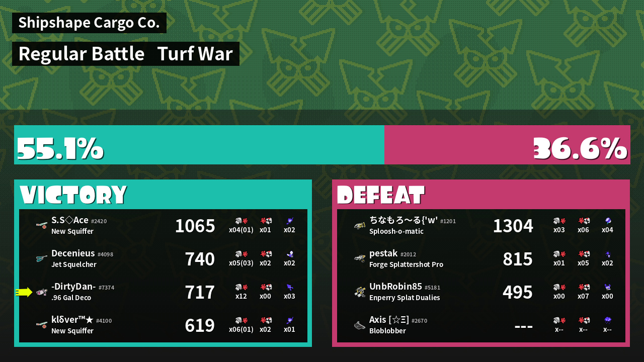 | Medals | #1 Overall Splatter #1 Enemy-Base Inker #1 Enemy Splatter | ||