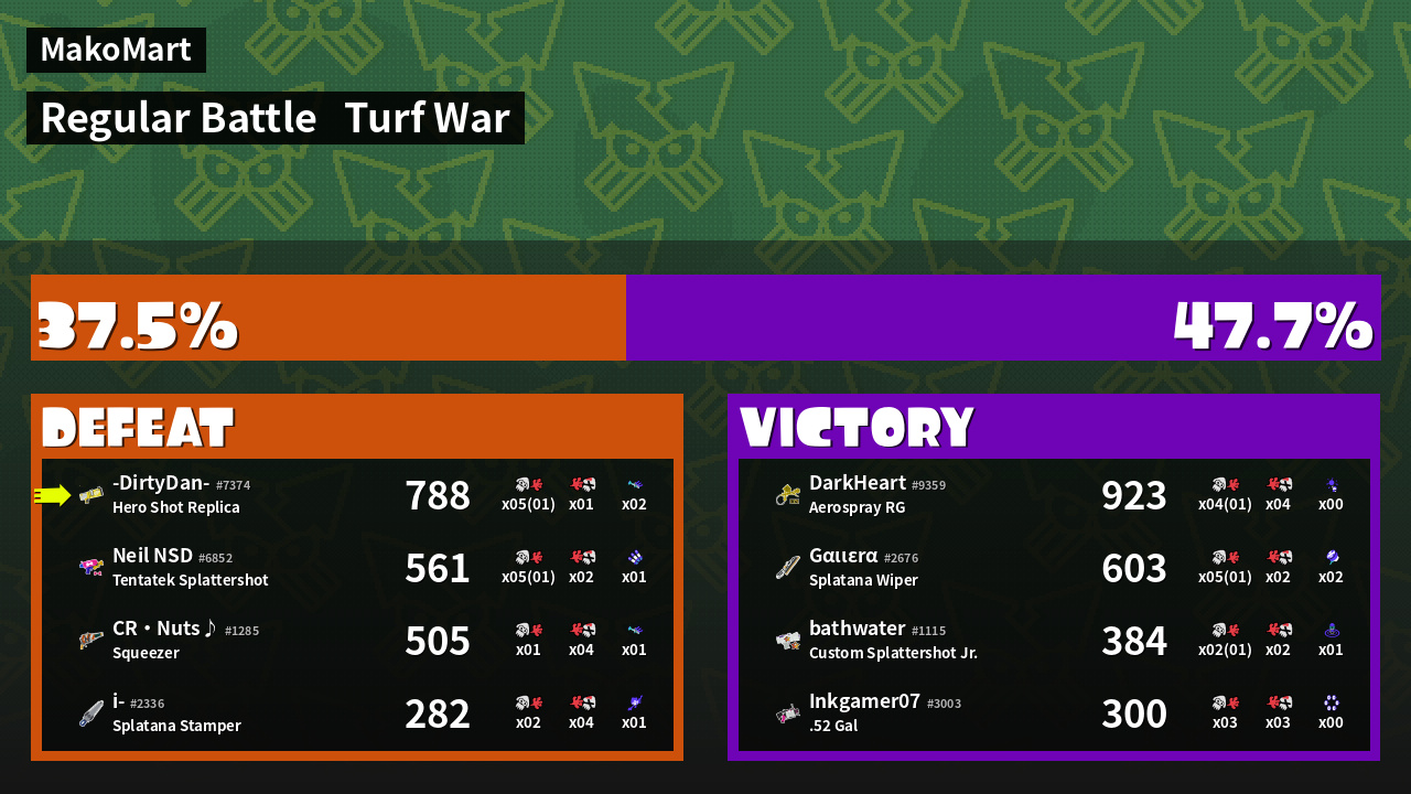 | Mode | Turf War - Regular Battle | ||