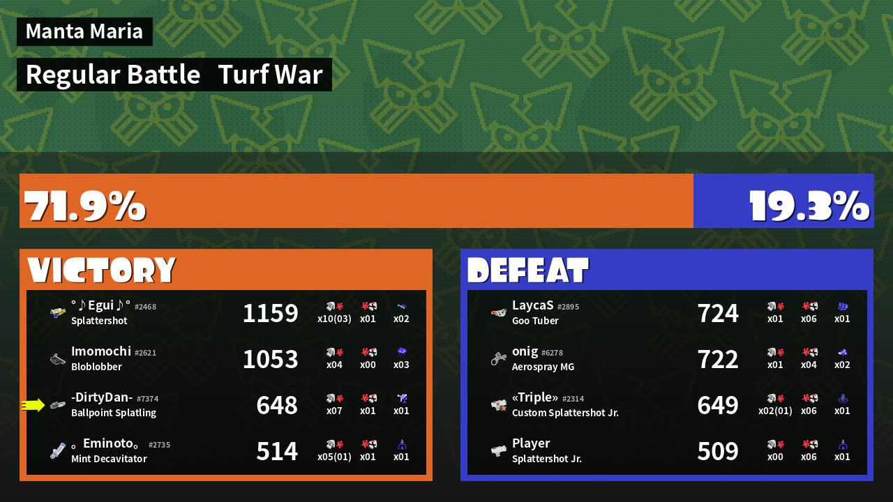 | Medals | #1 Popular Target #1 Super Jump Spot #1 Enemy Splatter | ||