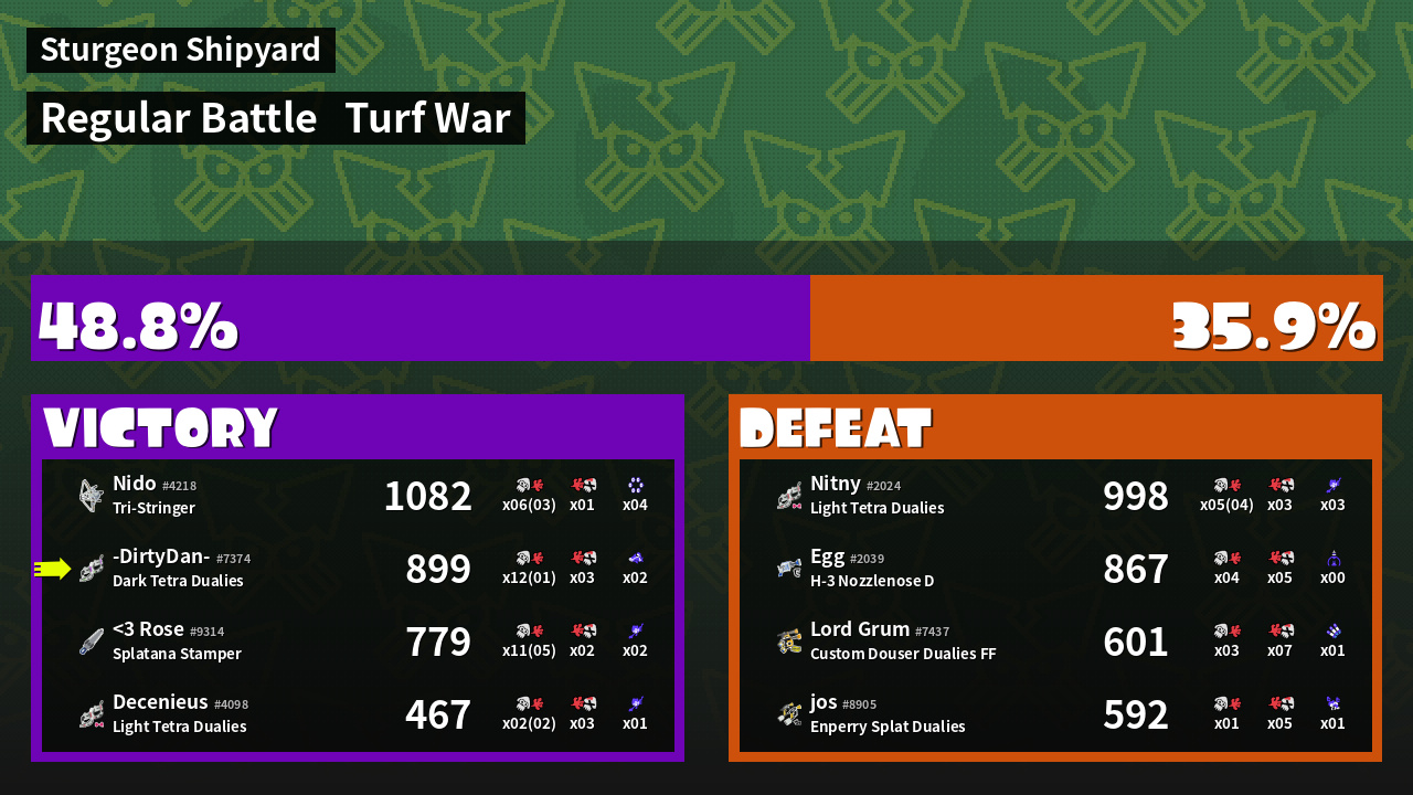 | Medals | #1 Overall Splatter #1 Popular Target #1 Enemy-Base Inker | ||