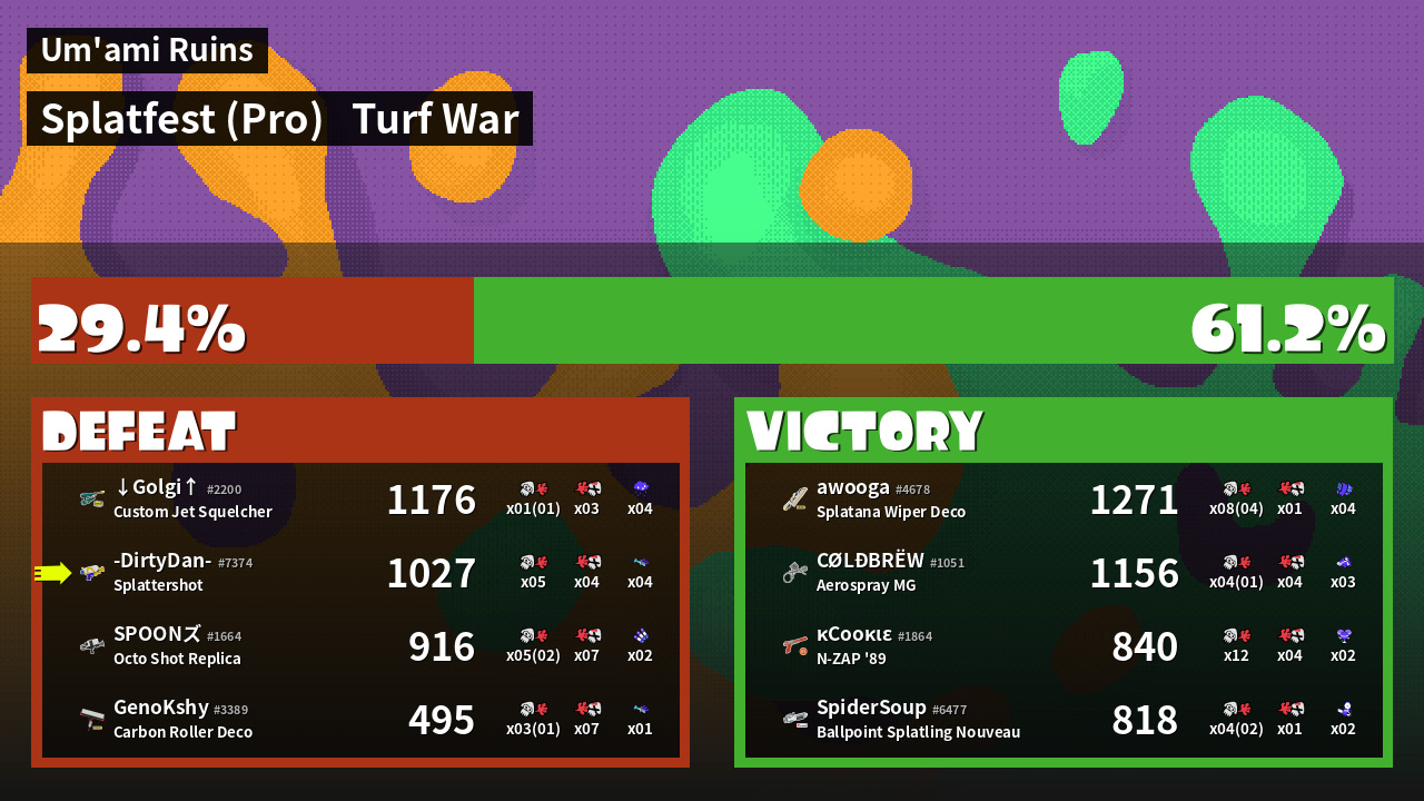 | Mode | Turf War - Splatfest (Pro) | ||