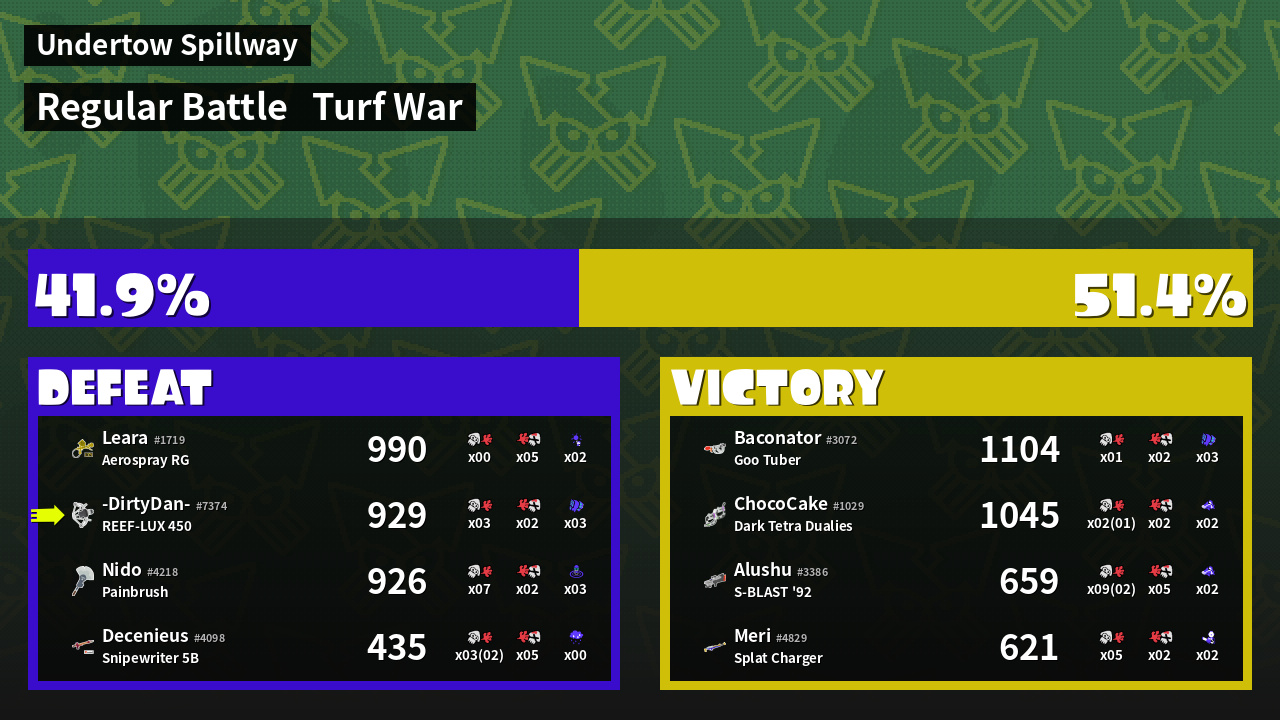 | Mode | Turf War - Regular Battle | ||