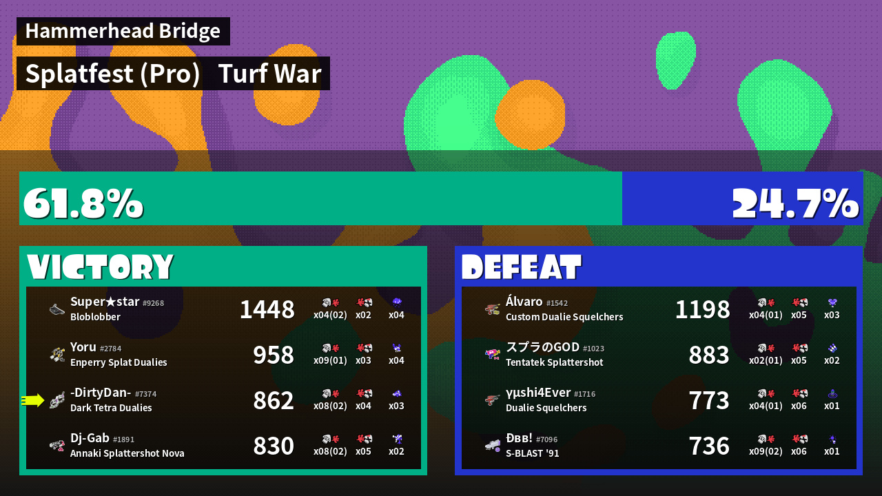 | Mode | Turf War - Splatfest (Pro) | ||