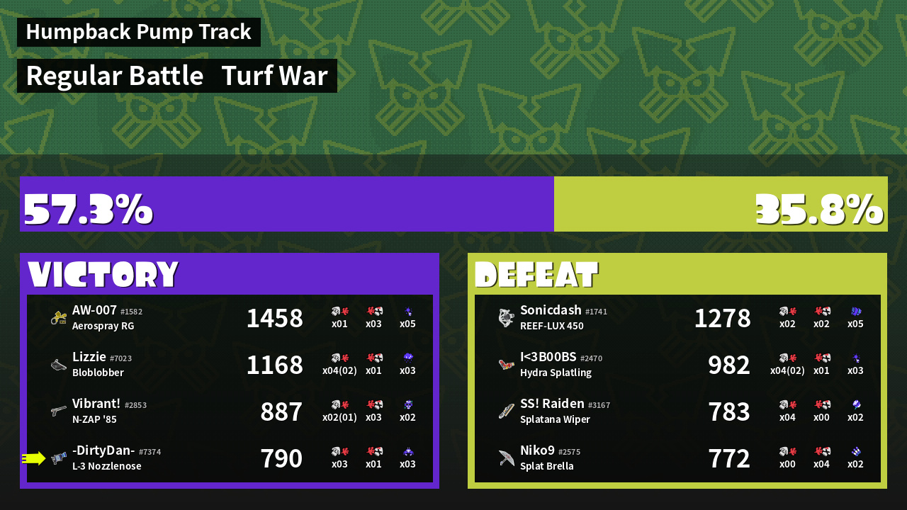 | Medals | #1 Enemy Splatter #1 Crab Tank User #2 Overall Splatter | ||