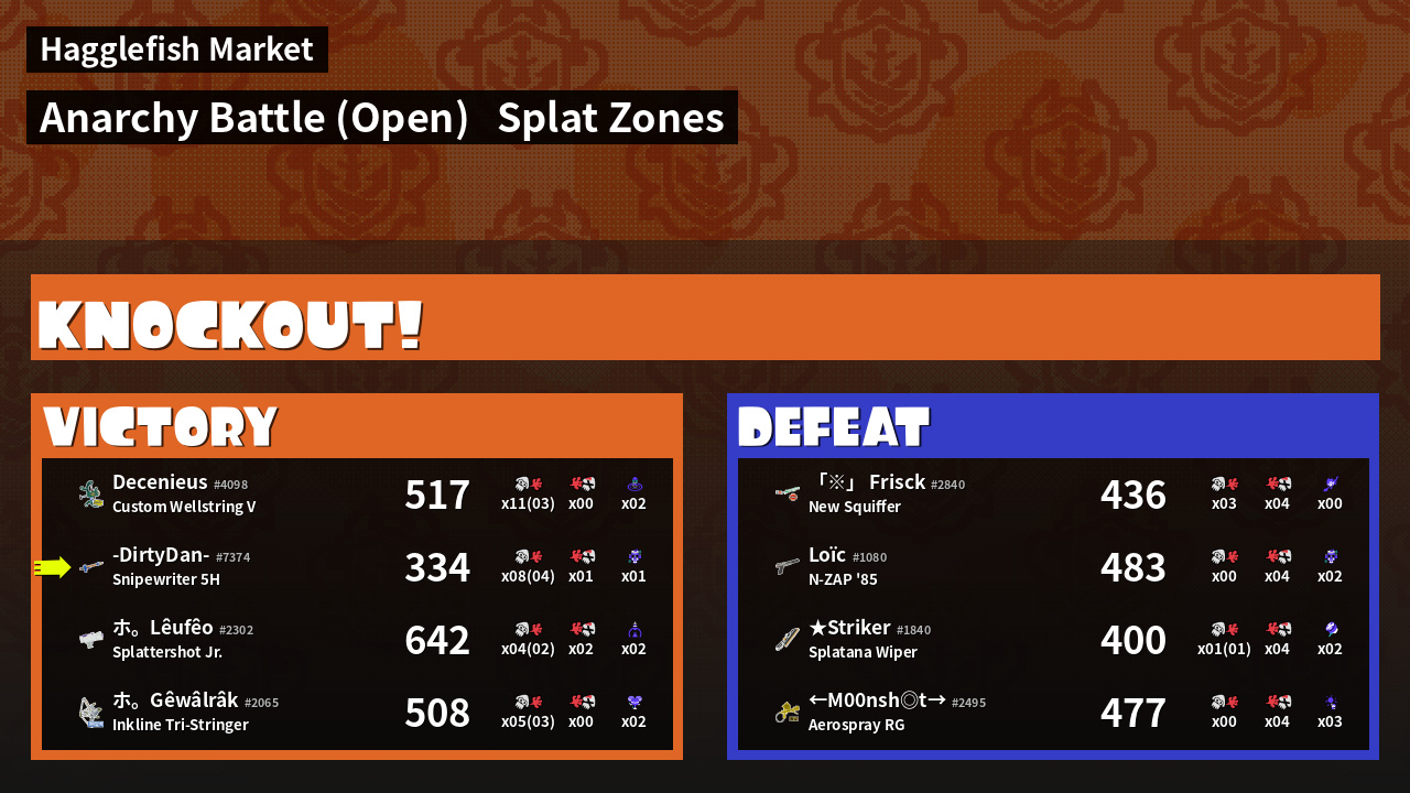 | Mode | Splat Zones - Anarchy Battle (Open) | ||