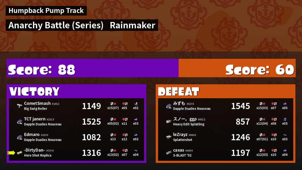 | Medals | #1 Damage Taker #1 Trizooka User #2 Overall Splatter | ||