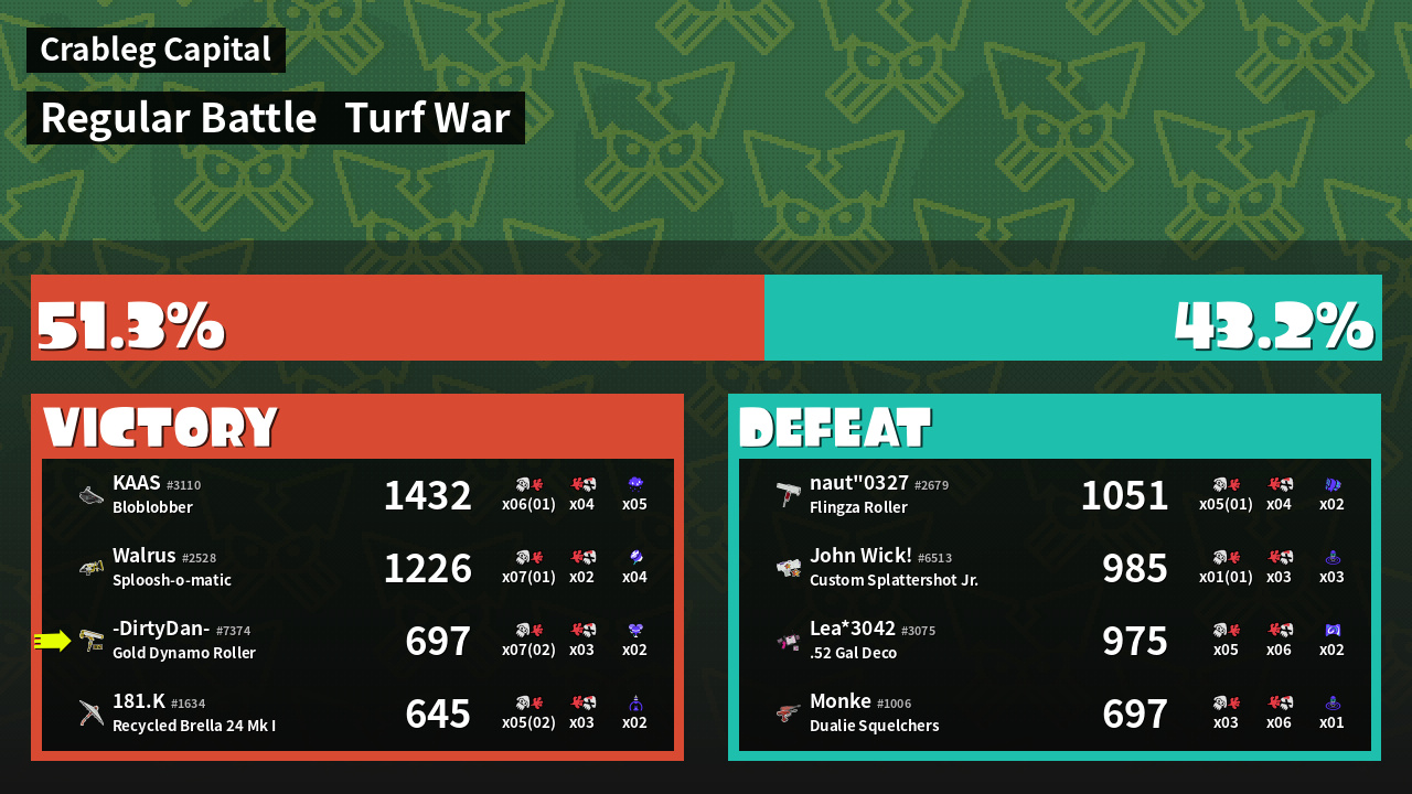 | Mode | Turf War - Regular Battle | ||