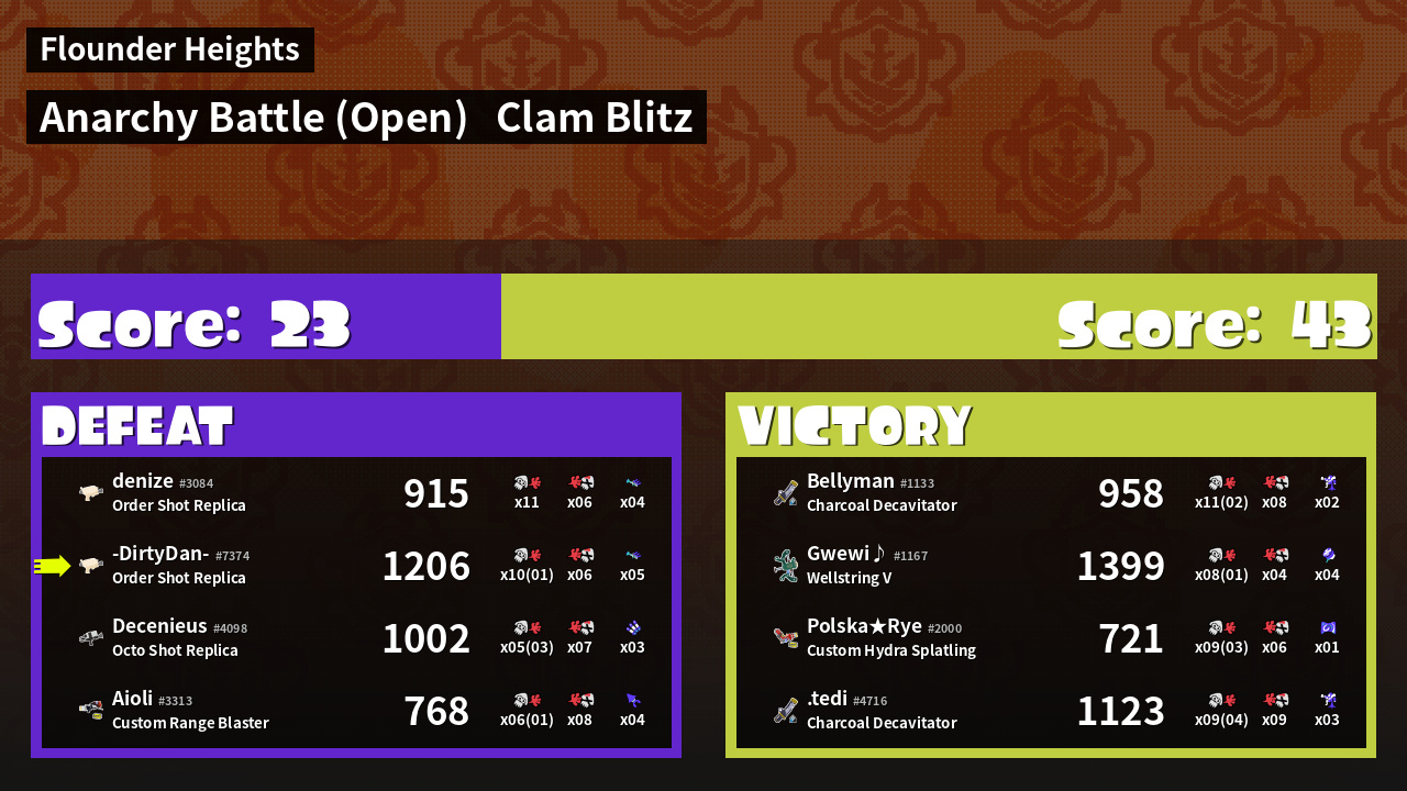 | Mode | Clam Blitz - Anarchy Battle (Open) | ||