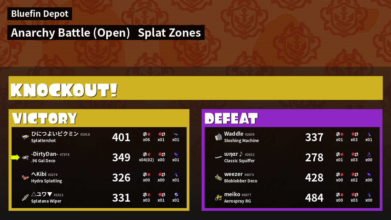 | Mode | Splat Zones - Anarchy Battle (Open) | ||